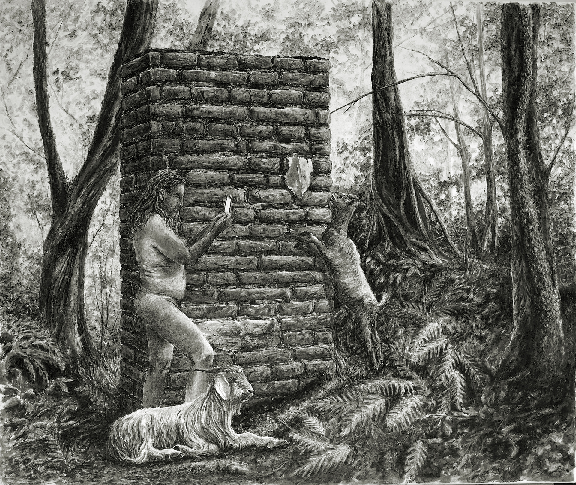 Scène mystique - fusain sur toile - 94 x 117 cm