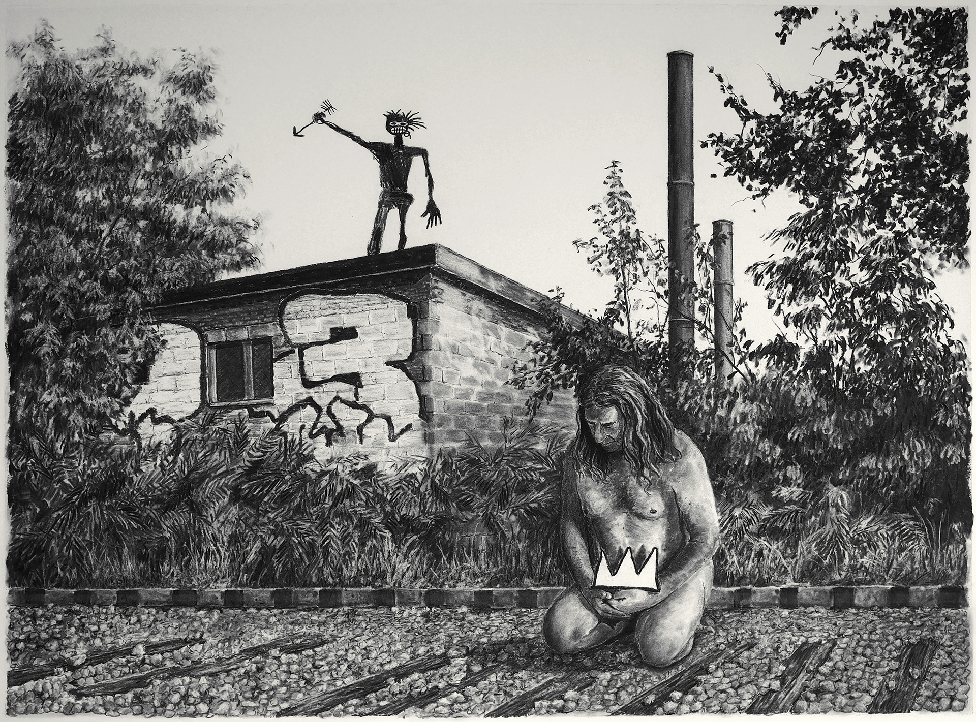 Il fut bling - fusain sur toile - 94 x 117 cm